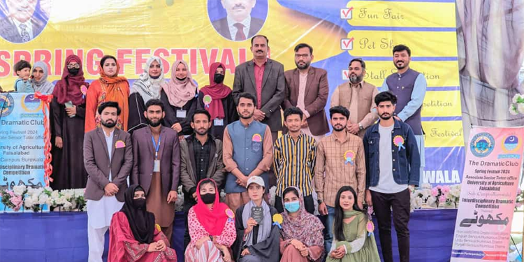 اسلام آباد (مانیٹرنگ ڈیسک ) یونیورسٹی آف ایگریکلچر فیصل آباد بوریوالہ کیمپس میں ڈرامٹک کلب کے زیر اہتمام ڈرامٹک مقابلے کا کامیاب انعقاد ، اردو زبان وادب اور کلچرل ایکٹیویٹیز سے شغف رکھنے والوں کے ساتھ ساتھ شائقین کی کثیر تعداد کی شرکت۔ تفصیلات کے مطابق یونیورسٹی آف ایگریکلچر فیصل آباد بوریوالہ کیمپس میں ڈرامٹک کلب کے زیر اہتمام ’’ مکھوٹے ‘‘ کے عنوان سے ڈرامٹک مقابلے کا انعقاد کیا گیا جس میں طلبا نے اپنے فن کا مظاہرہ کیا ۔