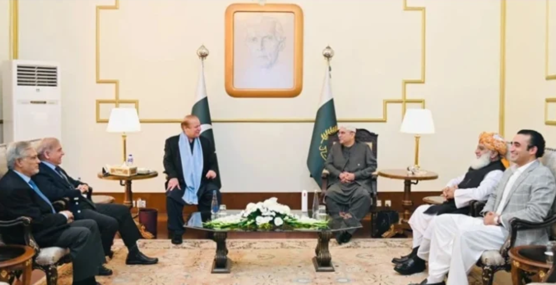 ایوانِ صدر میں فلسطینیوں سے یکجہتی کے حوالے سے منعقدہ اے پی سی صدر آصف زرداری، نواز شریف، مولانا فضل الرحمان، وزیر اعظم شہباز شریف، اسحاق ڈار اور بلاول بھٹو زرداری شریک تھے۔