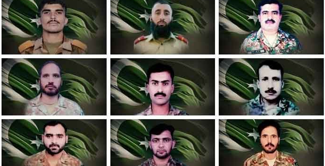 شہید ہونے والوں میں گوجرانوالہ کے صوبیدار عمران احمد فاروقی، سرگودھا کے حوالدار محمد جاوید اقبال، ایبٹ آباد کے نائیک طہماس احمد، ہری پور کے 39 سال کے نائیک باسط فرید شامل ہیں۔