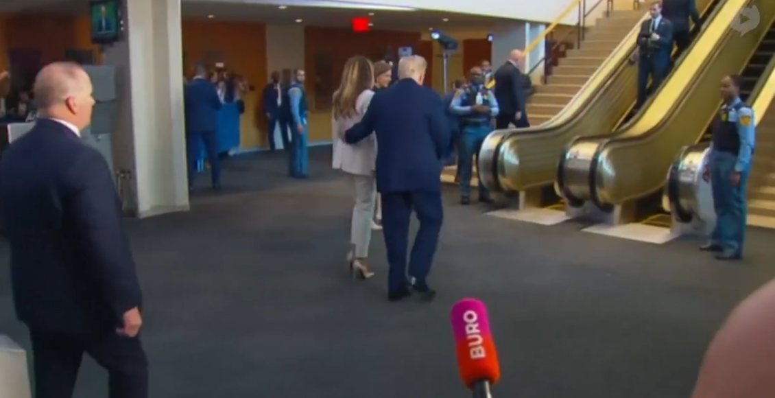 گزشتہ روز صدر ٹرمپ خاتون اول میلانیا ٹرمپ کے ہمراہ جب اقوام متحدہ کے ہیڈکوارٹر پہنچے اور بالائی منزل پر جانے کے لیے اپنے عملے کے ہمرے اسکیلیٹر پر چڑھے تو اچانک اسکیلیٹر رک گیا اور صدر ٹرمپ کو میلانیا کے ساتھ سیڑھیاں چڑھنی پڑیں۔