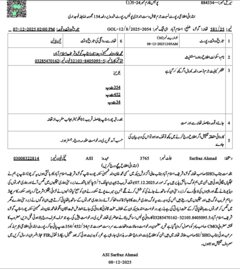 ایف آئی آر میں کہا گیا ہے کہ غیرملکی زبردستی جھگیوں میں داخل ہوئے اور خواتین کی زبردستی ویڈیو بنانے لگے، غیر ملکیوں نے عورتوں کو زبردستی ساتھ لے جانے کی کوشش بھی کی۔ سکندرنامی جھگی بان نے ان کو منع کرنے کی کوشش تو اس کا سر پھاڑ دیا گیا،جھگی بانوں کا کہنا ہے ان کی غربت کا ناجائز فائدہ اٹھاتے ہوئے غیر ملکی شہری ان کی عورتوں کے ساتھ ہاتھا پائی کرتے رہے ۔