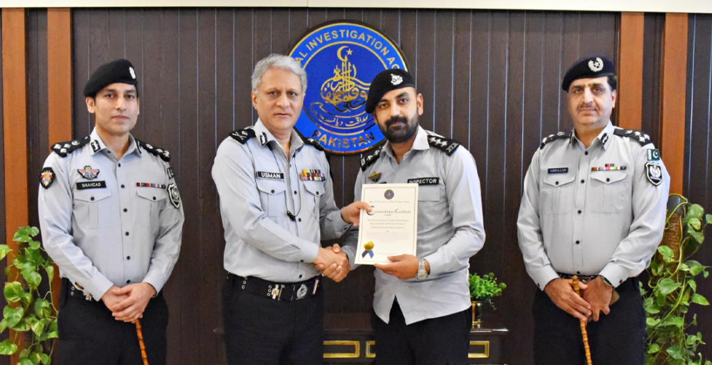 اسلام آباد: ڈائریکٹر جنرل ایف آئی اے ڈاکٹر عثمان انور کی جانب سے اسلام آباد زون میں تعینات افسران اور اہلکاروں کو بہترین کارکردگی پر تعریفی سرٹیفیکیٹس سے نوازا گیا۔